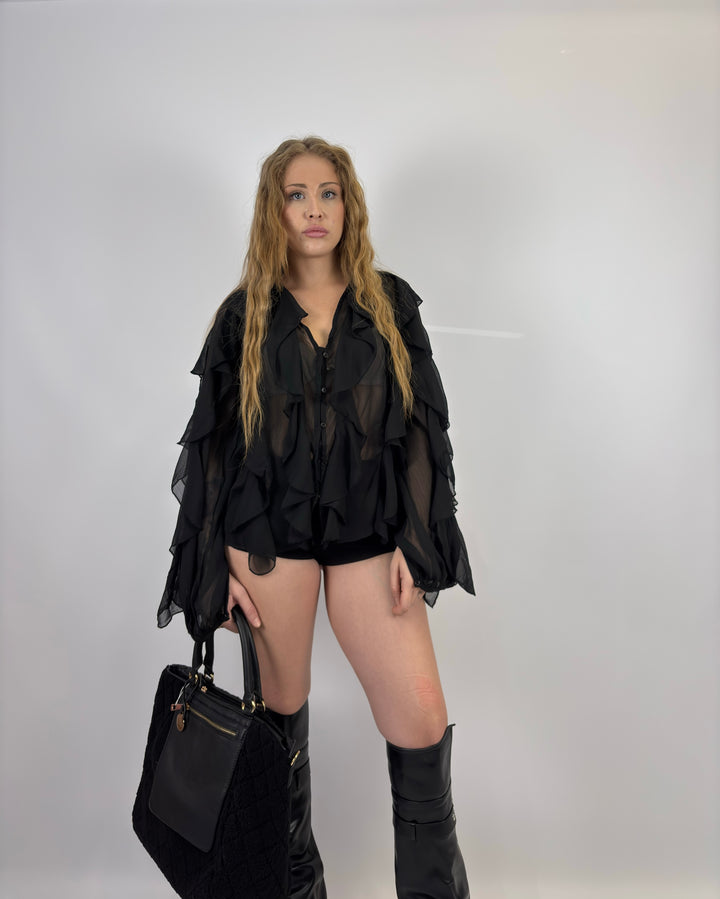 La Volant Blouse è la scelta ideale per perfezionare ogni look con un tocco di eleganza e femminilità. Grazie ai dettagli con volant, questa camicia dona movimento e carattere, valorizzando sia outfit casual che più formali. Realizzata con cura, assicura comfort e stile per ogni occasione, rendendola un capo versatile e indispensabile nel guardaroba.