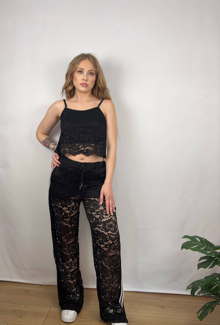 - Coordinato due pezzi: top + pantalone in pizzo