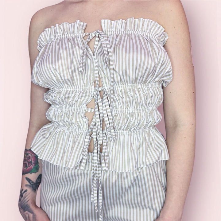 - Modello senza spalline con arricciature