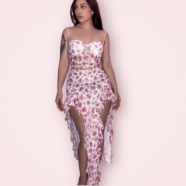 - Gonna con volant, spacchi doppi e vestibilità aderente
