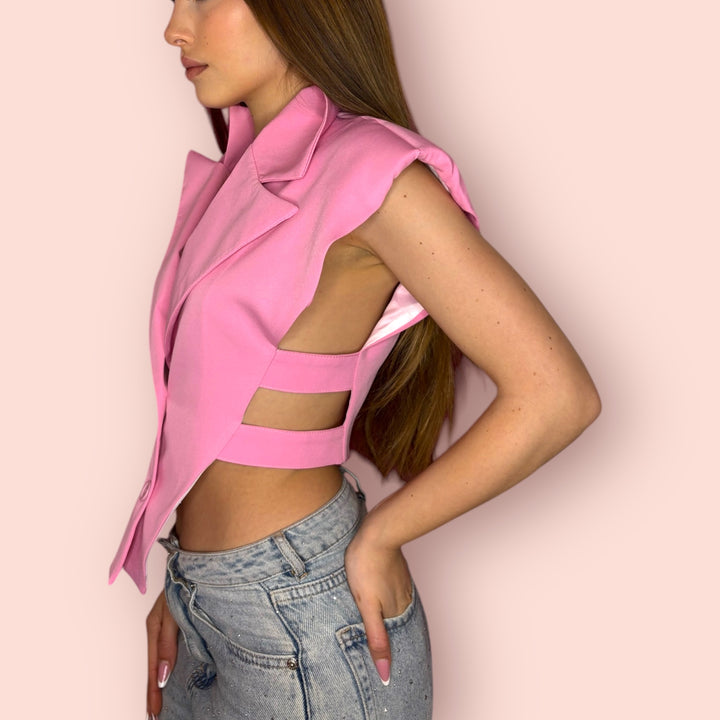 - Taglio cropped con doppia fascia laterale scoperta