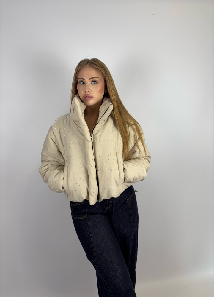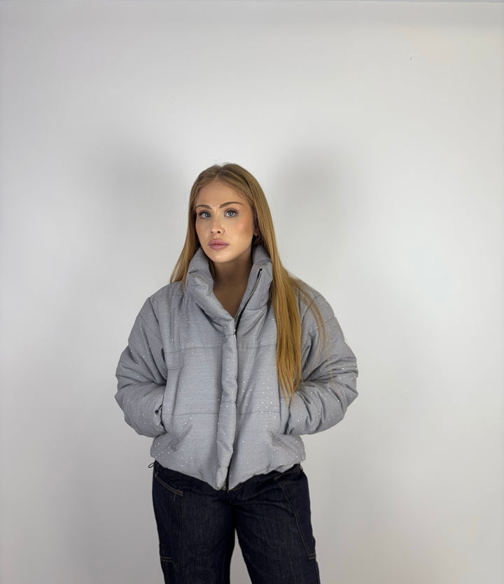 - Piumino corto con dettagli brillantini